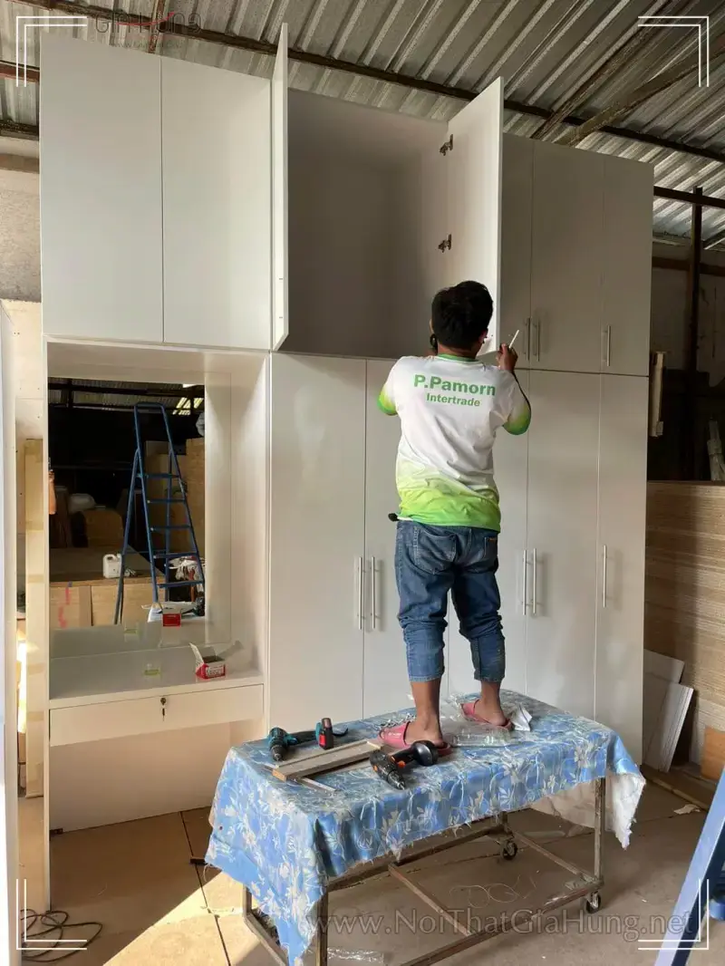 Tủ quần áo gỗ công nghiệp MDF chống ẩm có gương GHS-9595